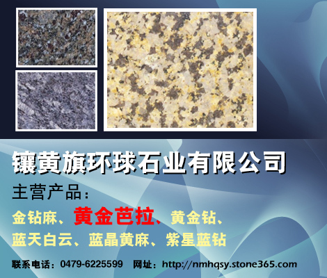镶黄旗环球石业石材产品:黄金芭拉、蝴蝶兰、紫星蓝钻、金钻麻、蓝天白云