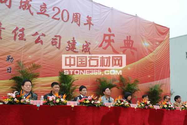 庆典上,丁勇云董事长总结了砉红、碧奎的不平凡的发展历程。经过二十年的拼搏奋斗,公司组建了一支专业队伍,真正实现了技术设备领先、“产、供、销、安装、保养”一条龙服务的新型石材加工基地。