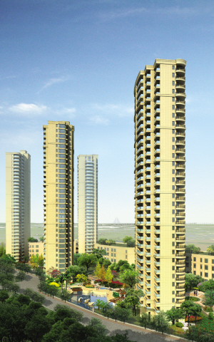 绿城房产是较早引进卡拉麦里金,将这种石材作为楼盘项目外立面材料的房产开发公司。