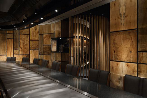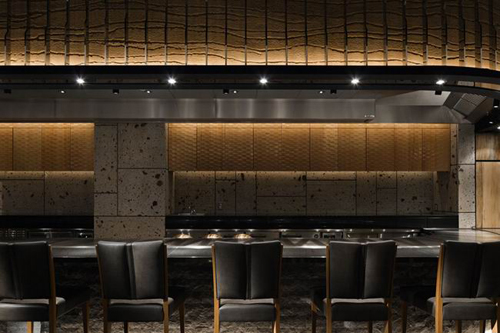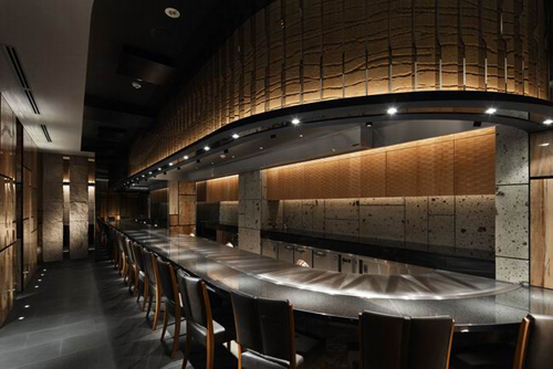 日本东京的这家牛排店用木镶板墙环绕室内,各色纹理创造令人深刻和高品质的用餐氛围。令人惊喜的是,设计师通过特殊工艺,将温暖的木材打造出大理石的外观。而真正的石材却创造出了另一种感觉。