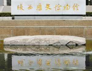 考古工作者在上世纪70年代就发现了石鲸鱼,后收藏于碑林博物馆(当时称陕西省博物馆)。1991年陕西历史博物馆开馆,其中的一条石鲸鱼便被安放在门口的观景池中。