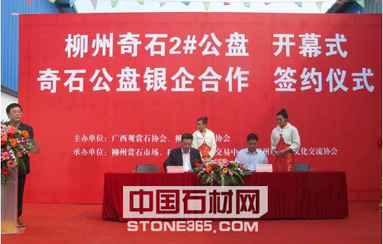 当日的公盘开锣现场,还举行银行与公盘交易中心的银企合作签约仪式,届时,柳州奇石公盘交易中心企业和商户个人将得到银行的融资服务,首批授信额度为1亿元人民币。