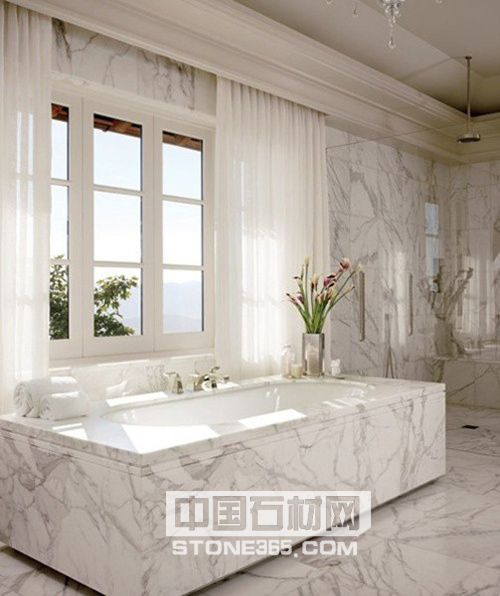 大理石自古就是高级建材,以其充满古典气息和历史感的纹理备受宠爱。然而选用大理石作为浴室铺贴主材,并非人人都有经济实力,但其效果确实与人造石材不同。