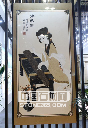 解说:杨淑涛仕女图《抚琴图》,多种石材将仕女打造的唯美天然。水刀拼花更彰显仕女柔美气质。此副水刀拼花带有南方气息,适于书房会客厅等。