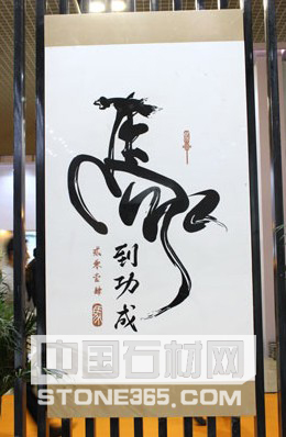 解说:战马一到阵前就取得胜利,寓意2014比较美好, 此幅书法作品在洁白的南斯拉夫白上,水刀将书法运动的灵活多变和水墨的丰富性表现出来。适合挂于办公室,客厅,也适合于作为礼品送与友人,恭祝马到成功,心想事成。