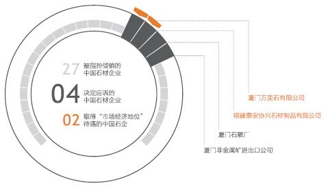 2000年11月24日,中国石材工业协会组织被卷入反倾销调查的27家企业紧急召开应诉准备会。但是大多数企业担心失败而放弃应诉,只有4家企业决定应诉,分别为厦门非金属矿进出口公司、福建惠安协兴石材制品有限公司、厦门石雕厂、厦门万里石有限公司,其中经欧盟调查后认定福建惠安协兴石材制品有限公司、厦门万里石有限公司获得“市场经济地位”待遇。