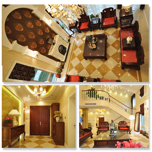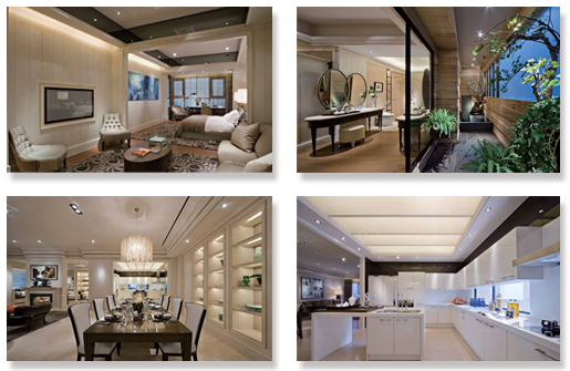 这是台湾璞园扬升君临142坪样板,白色与米黄为主,高贵典雅。局部装饰运用古典线角,但家具风格夸张,个性突出,主要为西方装饰。