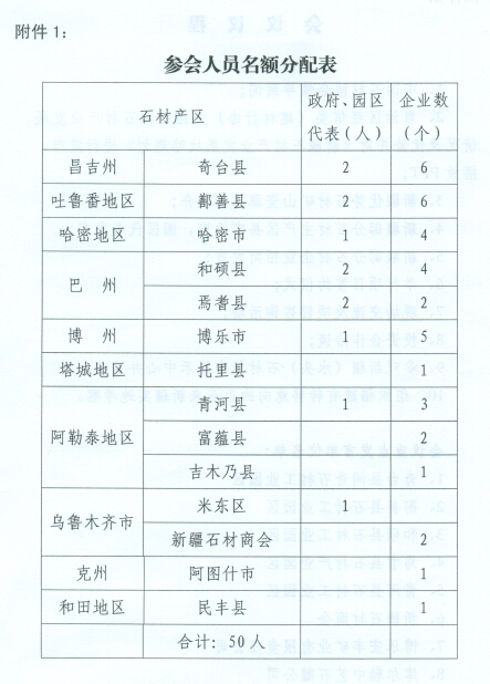 各石材主产区政府、园区,新疆石材商会,重点石材企业: