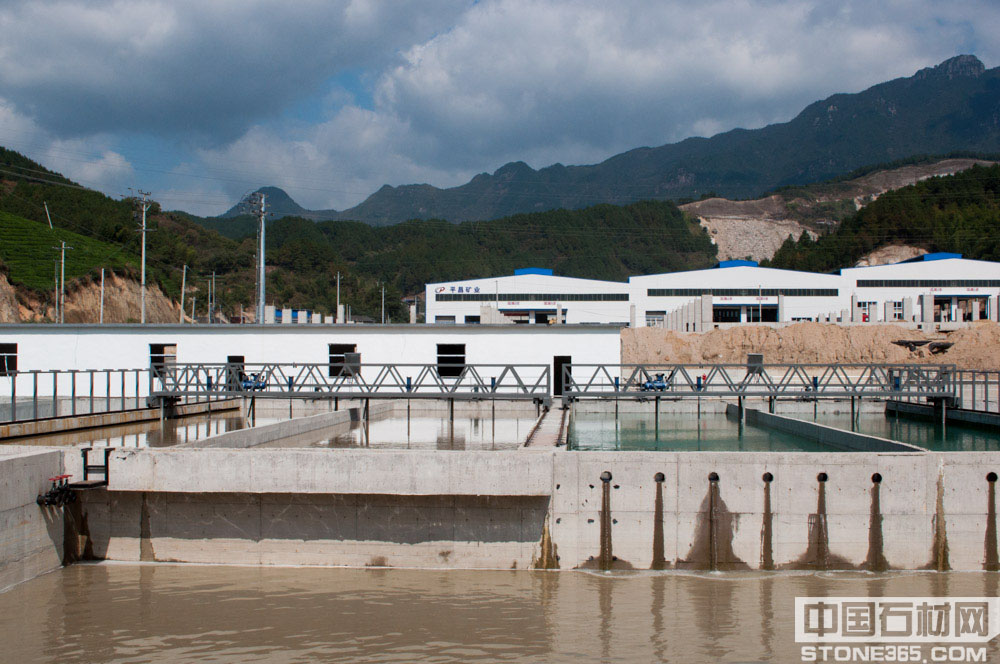 其次是解决废弃物处理后的出路问题。公司将生产废水经过沉淀处理以后,全部回用;而 生产废水的初级沉淀物可以用于轻质砖材料;加工厂的边角料、矿山风化料、废石料,可以用于加工生产混泥土用粗、细骨料;矿山覆盖物、污水处理过程中产生的污泥可以混合制作烧结砖。