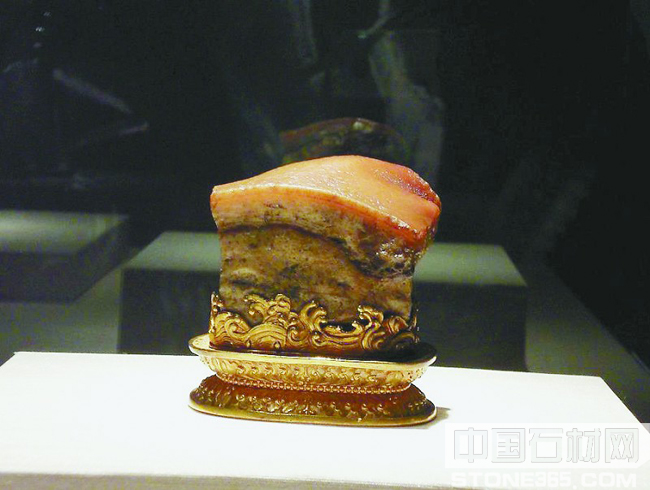 东坡肉形石出自内蒙阿拉善左旗,在清 中国四大奇石之东坡肉形石,在清朝康熙年间供入内府,现为中国四大奇石之一。现收藏在台北故宫,此奇石是一块天然的石头,色泽纹理全是天然形成,如鸡蛋大小,其矿物化学成分是二氧化硅。此东坡肉形石,色泽纹理全是天然形成,看上去完全是一块栩栩如生的五花肉块,“肉”的肥瘦层次分明、肌理清晰、毛孔宛然,肌理也相当逼真,现它与翠玉白菜、毛公鼎并称台北故宫的“镇馆三宝”。