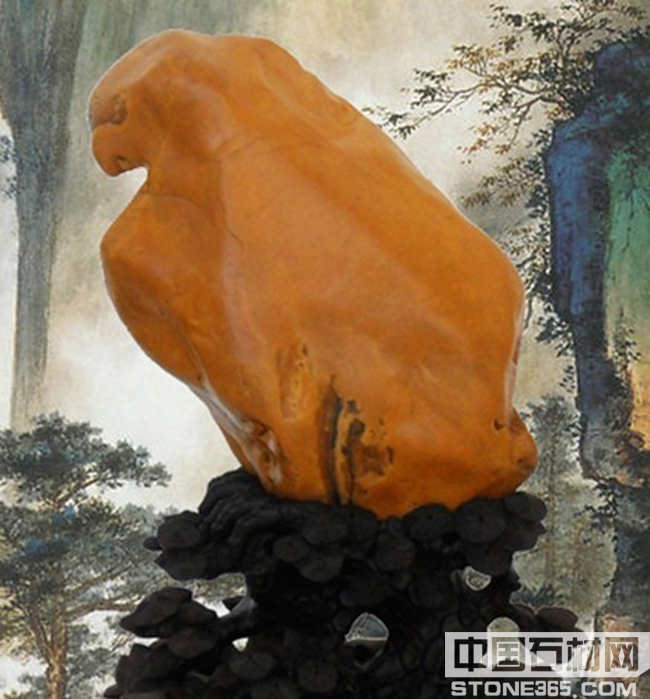 现收藏于广东的张家铭藏家手中,属黄龙玉石种,出自广东紫金南母寺。这是一块神话传说中天然形成的奇石,弯弯的鹰嘴,犀利的眼神,完美的线条形神兼似,配上金黄色的玉质,大小又与真鹰比例一样,让人不得不感叹这大自然的鬼斧神工之作。
