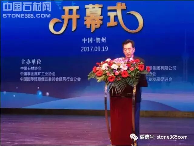开幕式在贺州市文化中心大剧院举行,由中国石材协会副秘书长邓惠青主持,贺州市常委、常务副市长廖和明致欢迎辞,中国石材协会副会长齐子刚发表讲话后,由中国石材协会授予贺州市“中国贺州·岗石之都”牌匾。