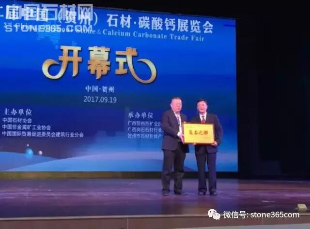 中国石材协会授予贺州市“中国贺州·岗石之都”牌匾