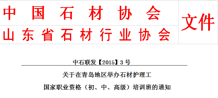 关于在青岛地区举办石材护理工 国家职业资格(初、中、高级)培训班的通知