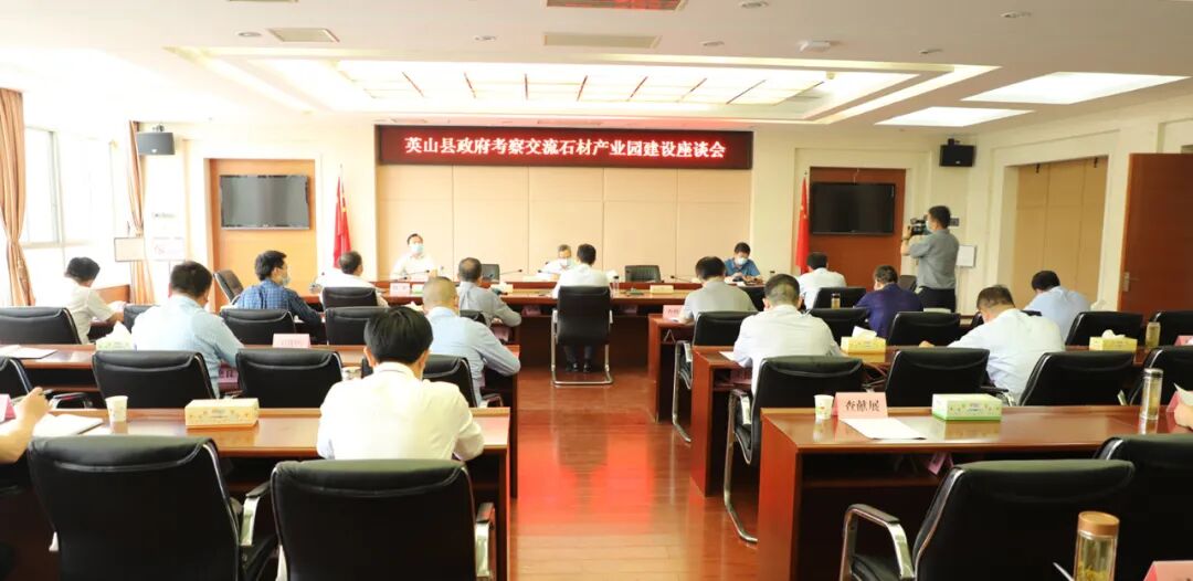 英山县政府领导一行先后参观考察了园区初级雨水收集处理中心、宝联石业,展示展览中心,系统详细的了解了石材产业园的整体规划设计、发展理念,及现阶段的生产经营情况和建设情况等,考察结束后,在麻城市政府大楼三楼召开座谈会。