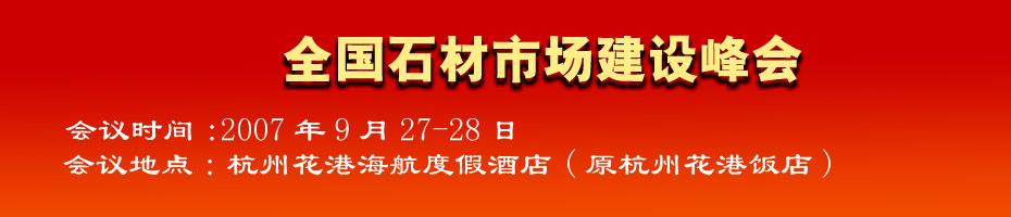 首届全国石材市场建设峰会今日在杭州花港海航度假酒店隆重举行,与会人数达100多人。此次峰会由中国石材工业协会主办,浙江石材协会和中国石材网(www.stone365.com)共同承办。 参加会议的有中国石材工业协会、各省市石材协会有关领导和权威专家以及全国各主要石材市场负责人和浙江各石材市场商户代表,全国各地石材市场有北京西联国际石材市场、福建闽南第一建材市场、华东石材市场、云浮国际石材城、上海恒大石材交易市场、新疆鄯善石材工业园区、河北鑫顺石材市场、安徽红旗石材市场、大连天华石材批发市场、杭州下沙石材石材、浙江九鼎石材市场、杭州下沙月雅桥石材市场等。 【详细】